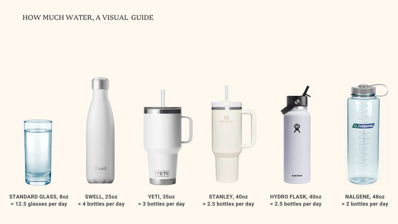 Get a big water bottle: This is non-negotiable. A 1-liter (32oz) bottle means you only need to refill it 2-4 times instead of constantly filling glasses. Having a visual tracker helps you know if you're on pace.